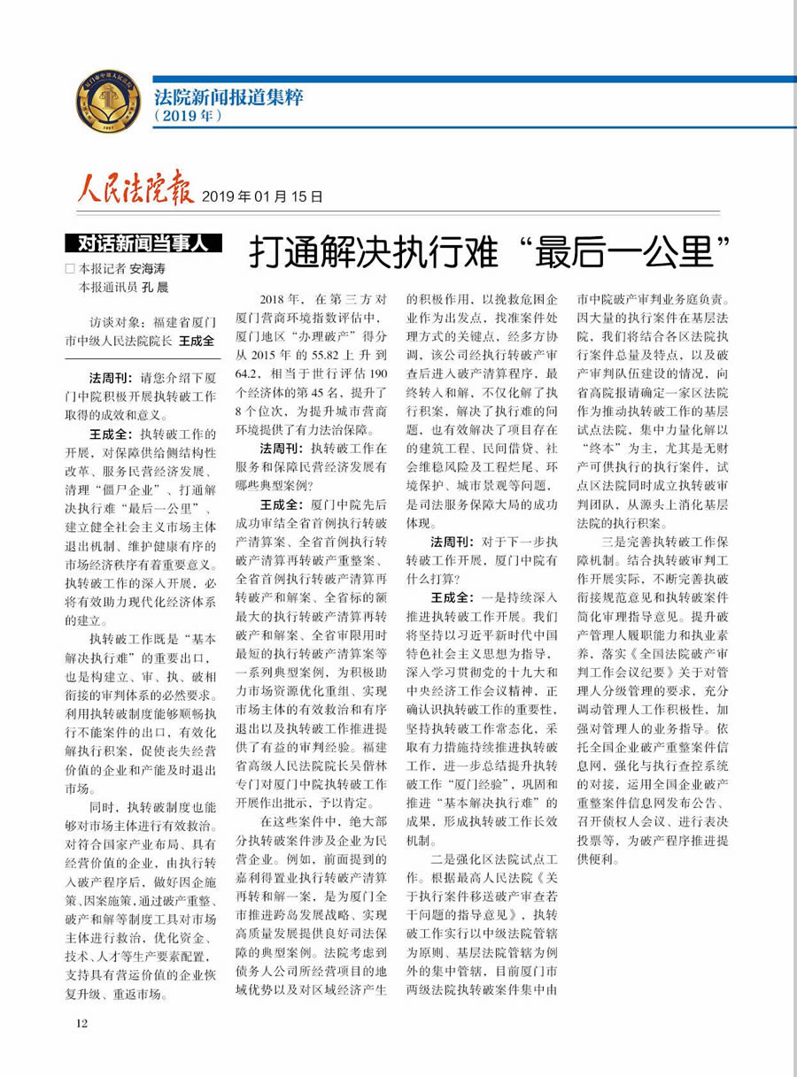 人民法院报--打通解决执行难“最后一公里”